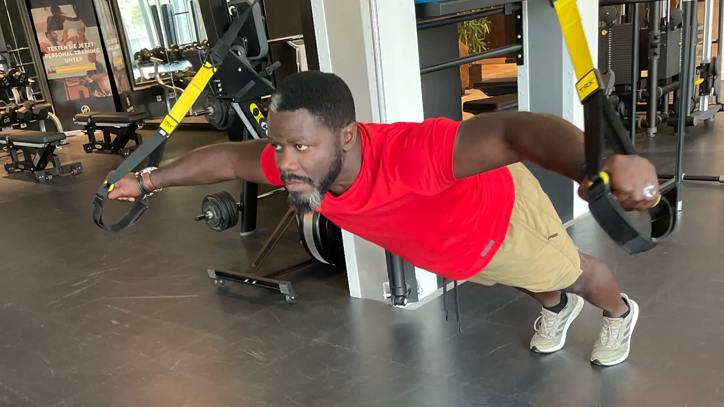 Im TRX Suspension Training bieten wir ein dynamisches Workout, das deine Grenzen sprengt. Mit den Schlingen und Gurten des TRX-Systems trainieren wir Kraft, Stabilität und Flexibilität. Jede Übung fordert deinen gesamten Körper heraus und verbessert deine Körperkontrolle. Egal ob Anfänger oder erfahrener Athlet, das TRX-Training passt sich jedem Fitnesslevel an. Als dein Trainer motiviere ich dich, deine Grenzen zu überschreiten und deine Fitnessziele zu erreichen. Gemeinsam bringen wir dich auf ein neues Level der Fitness mit dem intensiven TRX Suspension Training. Let’s TRX it!